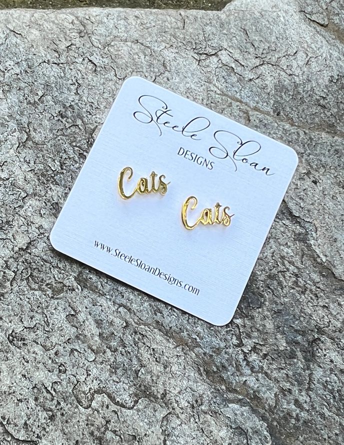 Perfect way to show your Cats Team Spirit with these adorable Stainless Steel Hypoallergenic Gold Stud Earrings in Cats script-