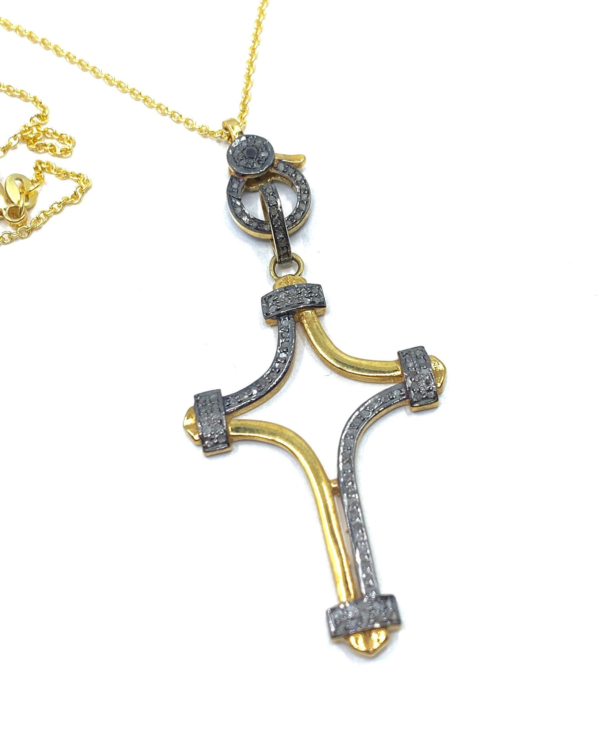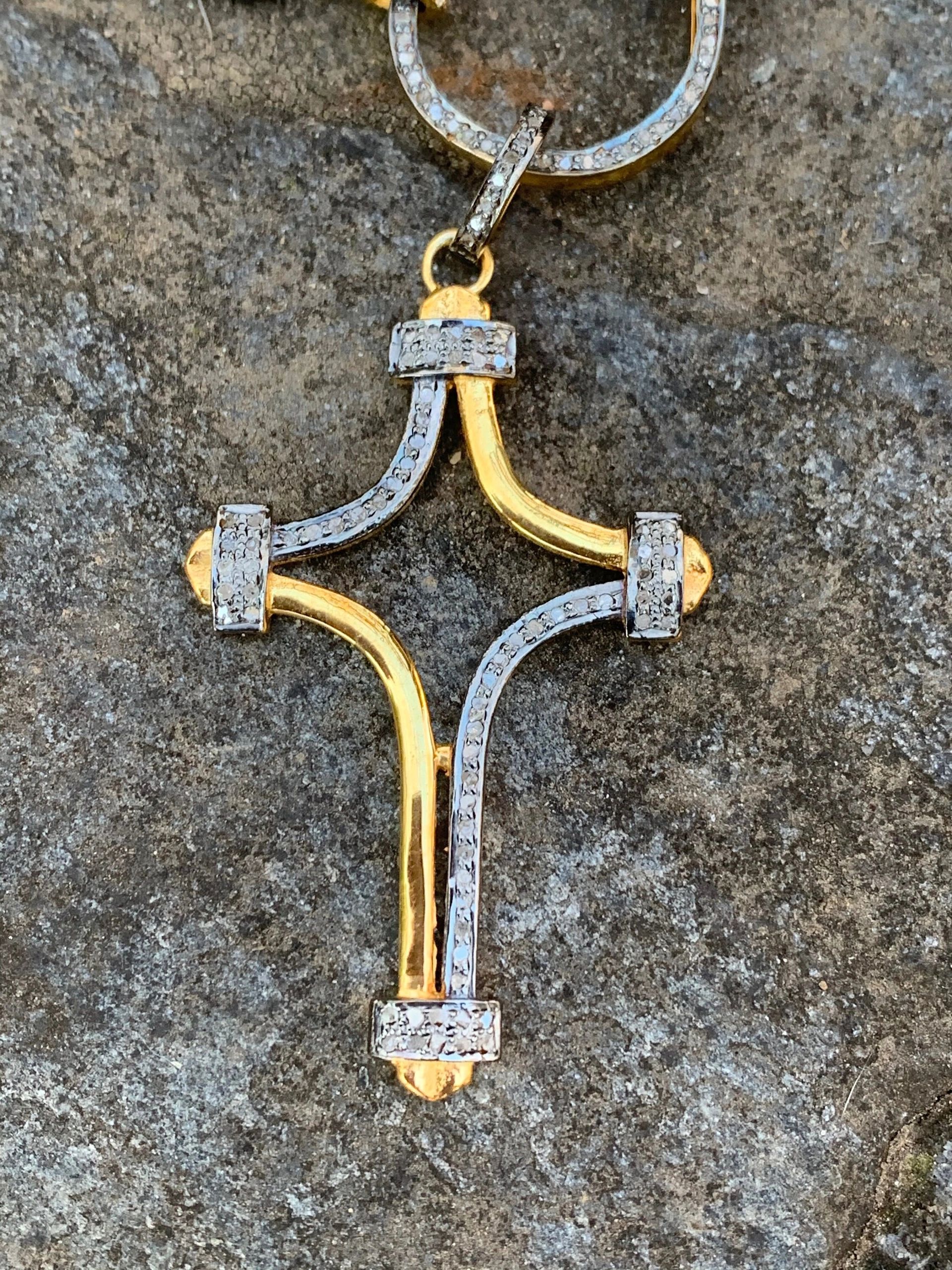 Large Gold and Silver Pave Diamond Cross Pendant – Free Priority Shipping!