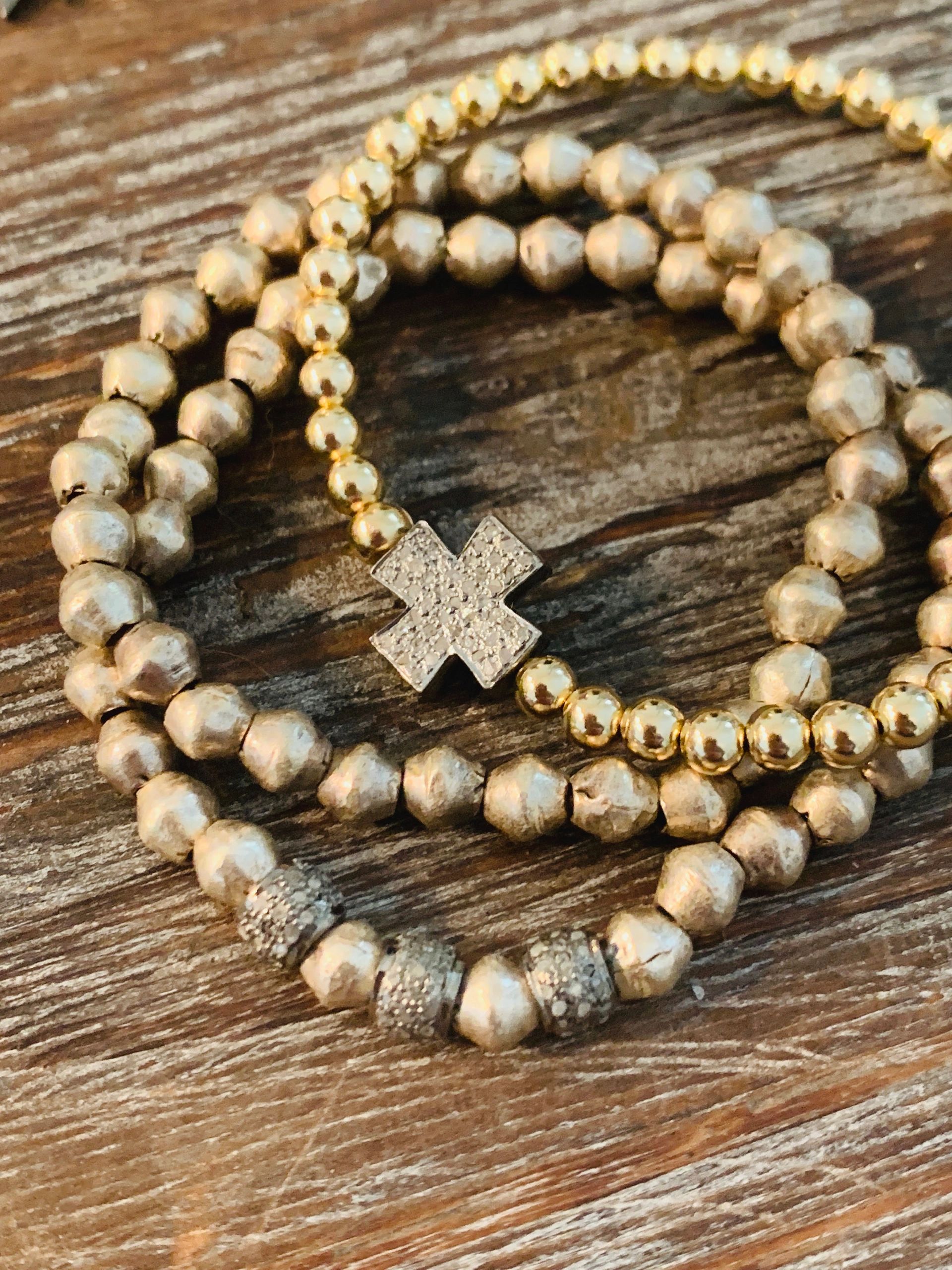 and our Pave Diamond Cross Bracelet with Gold Beads: