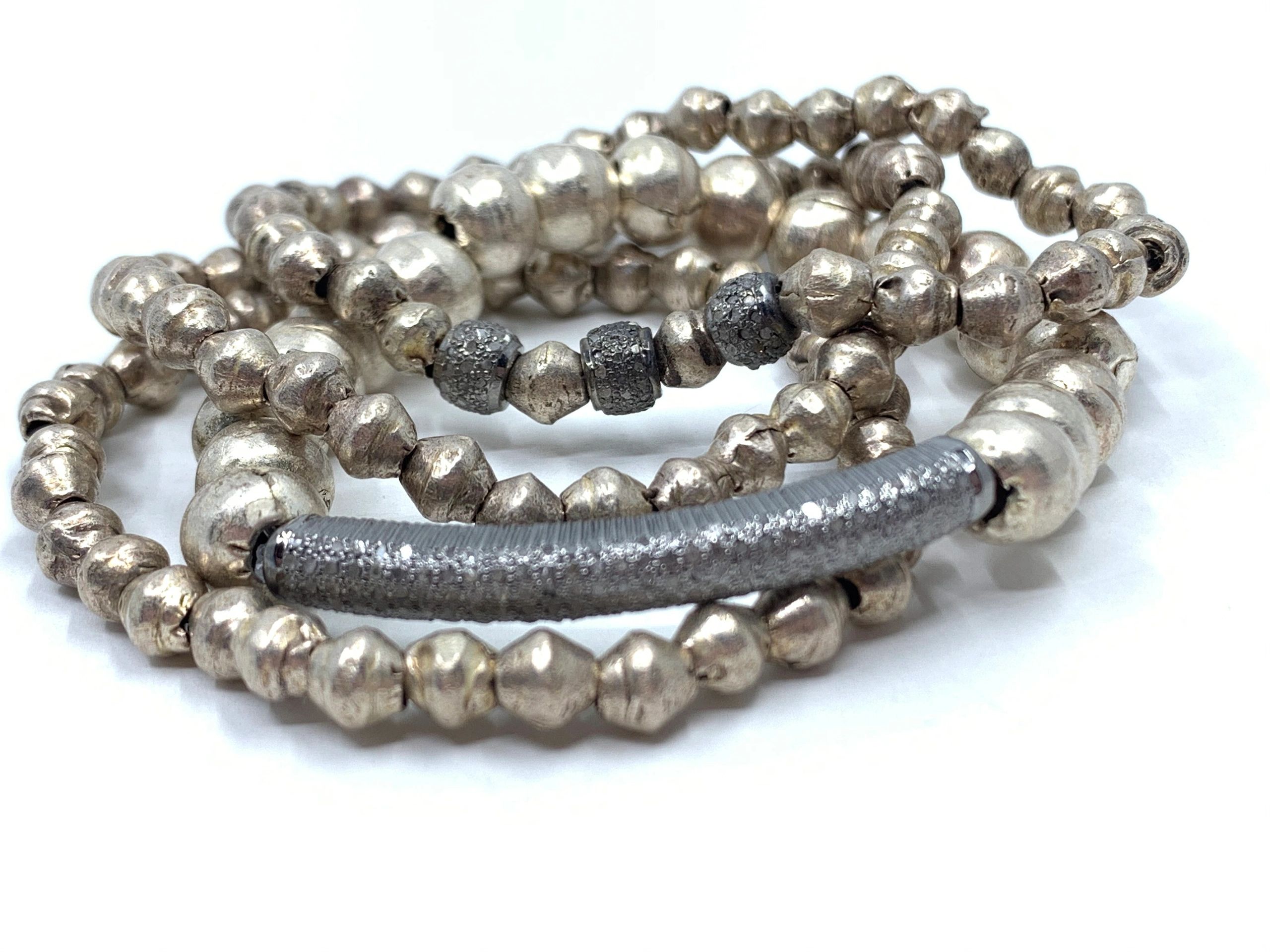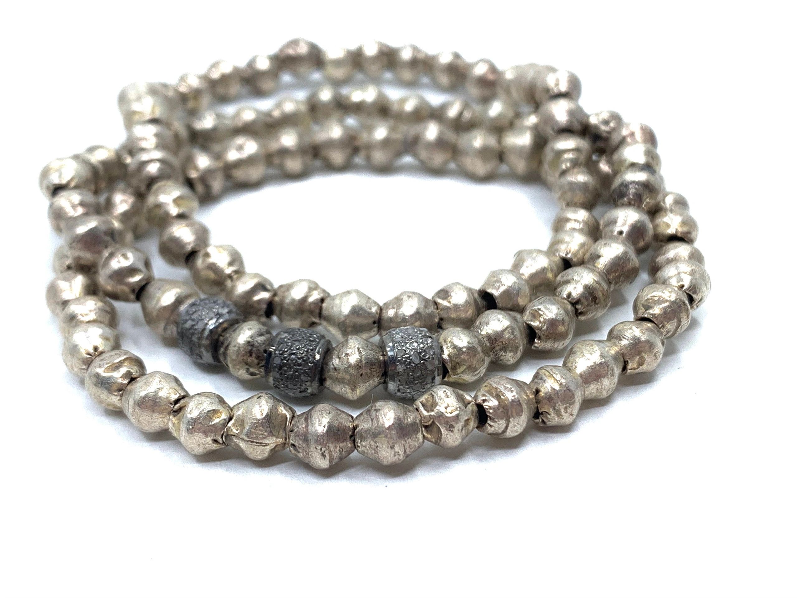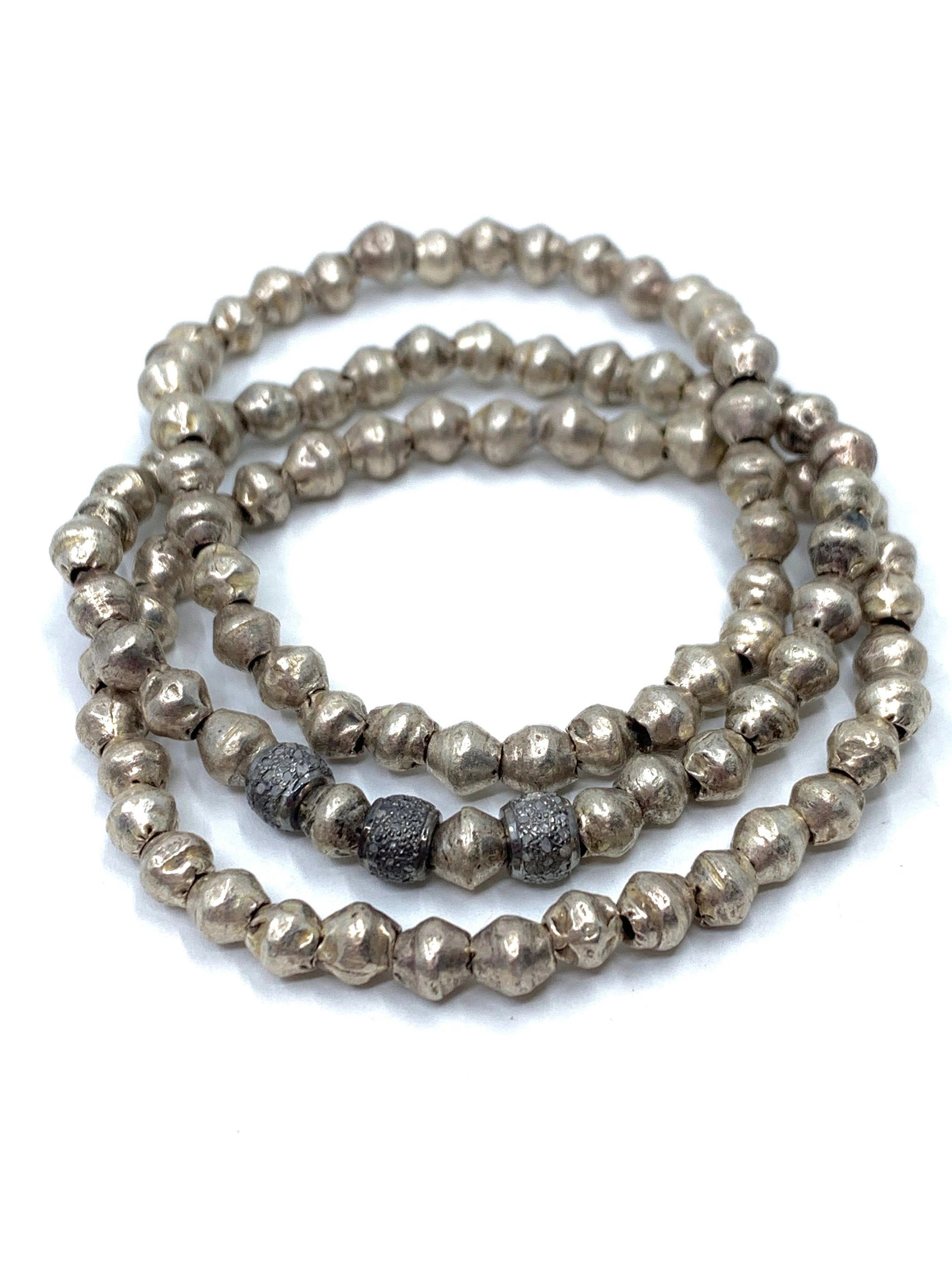 Smaller Stack Stretch Bracelet set of 3 bracelets in Pewter Beads with Pave Diamond Accents  –