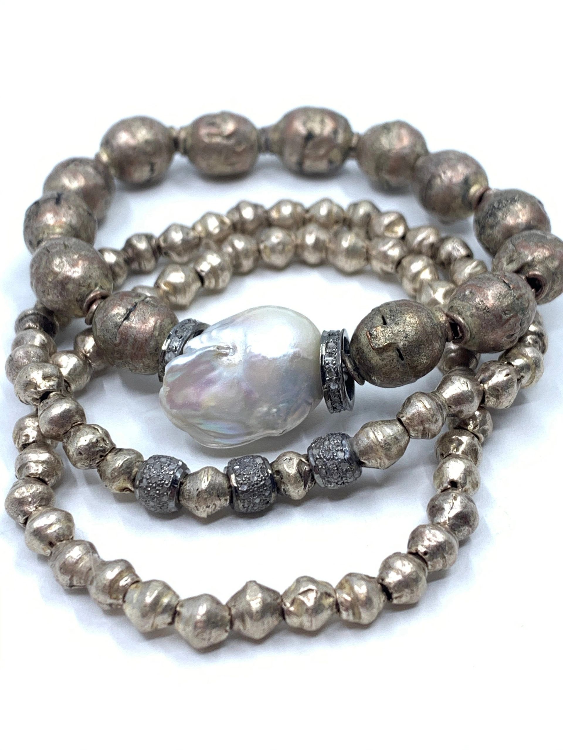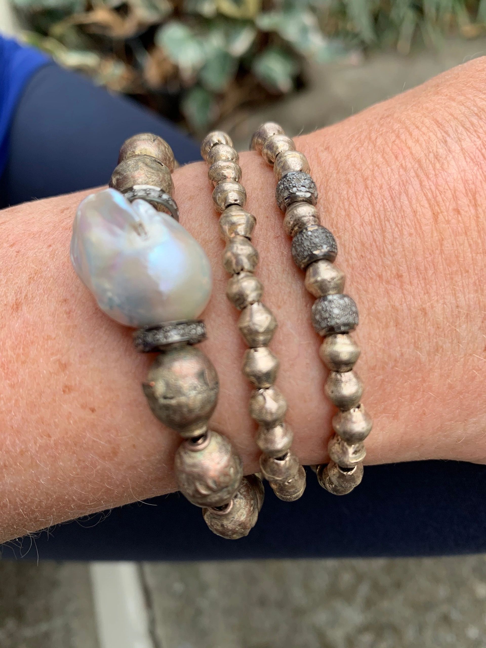 Shown with our Large Baroque Pearl and Pave Diamond Bracelet