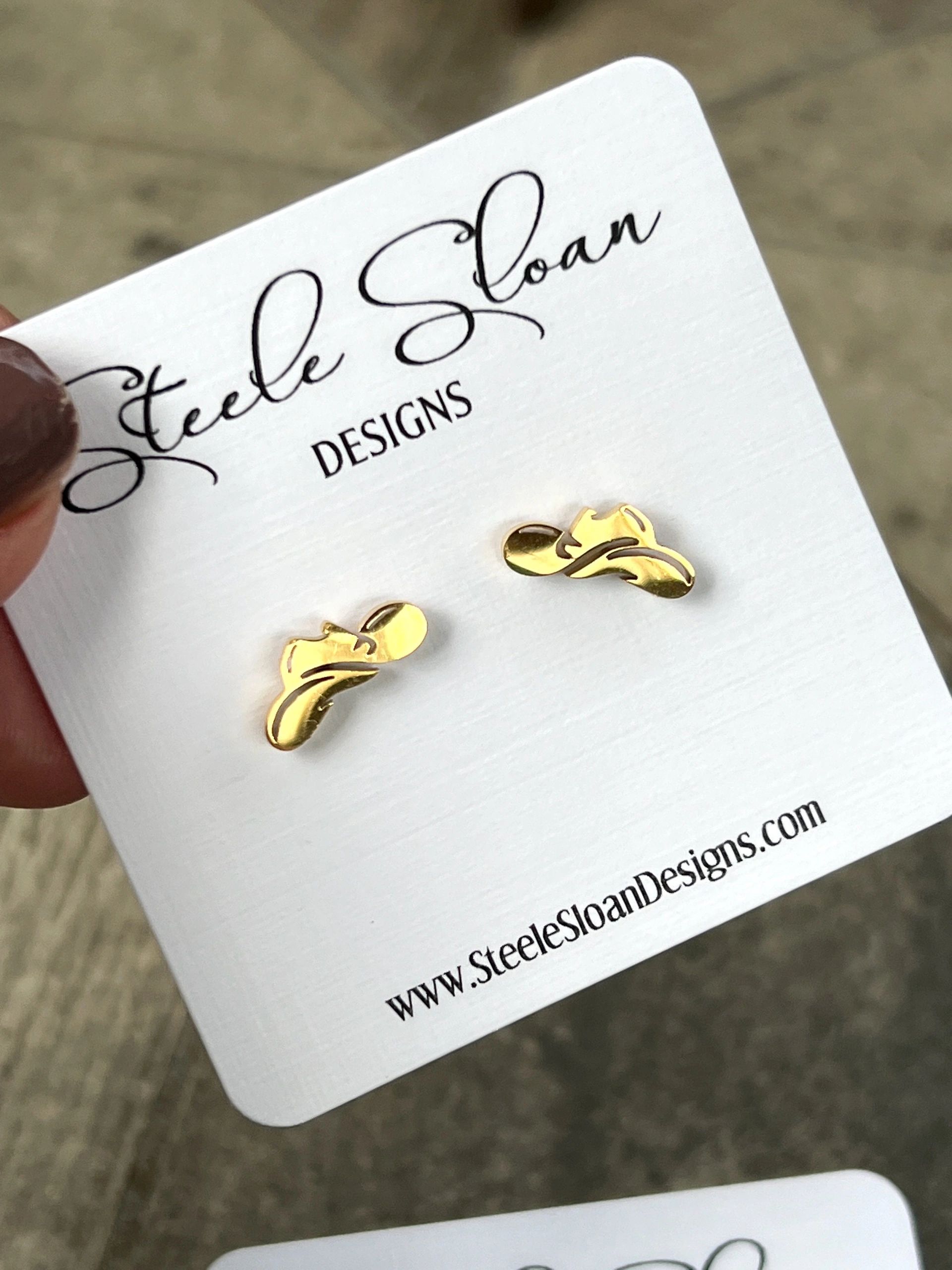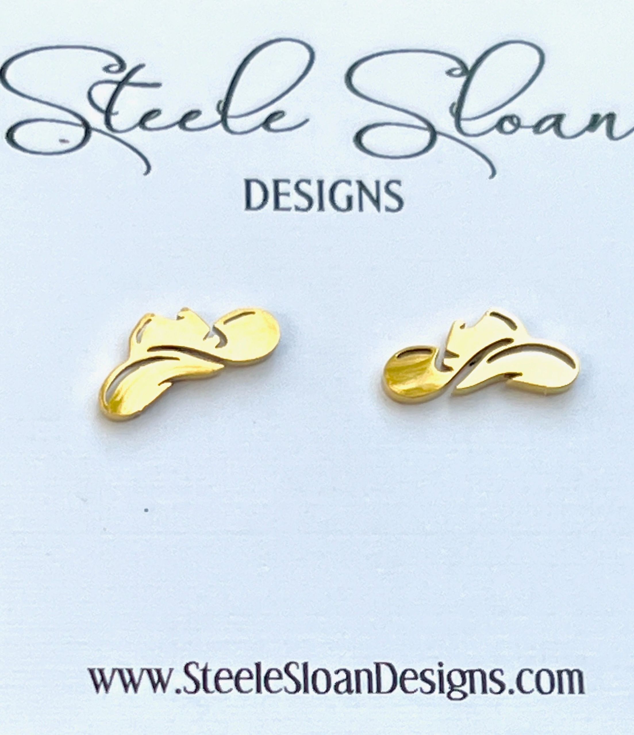 Super cute cowboy hat / cowgirl hat gold stud earrings measure just at 1/2 inch – gold hypoallergenic stainless steel