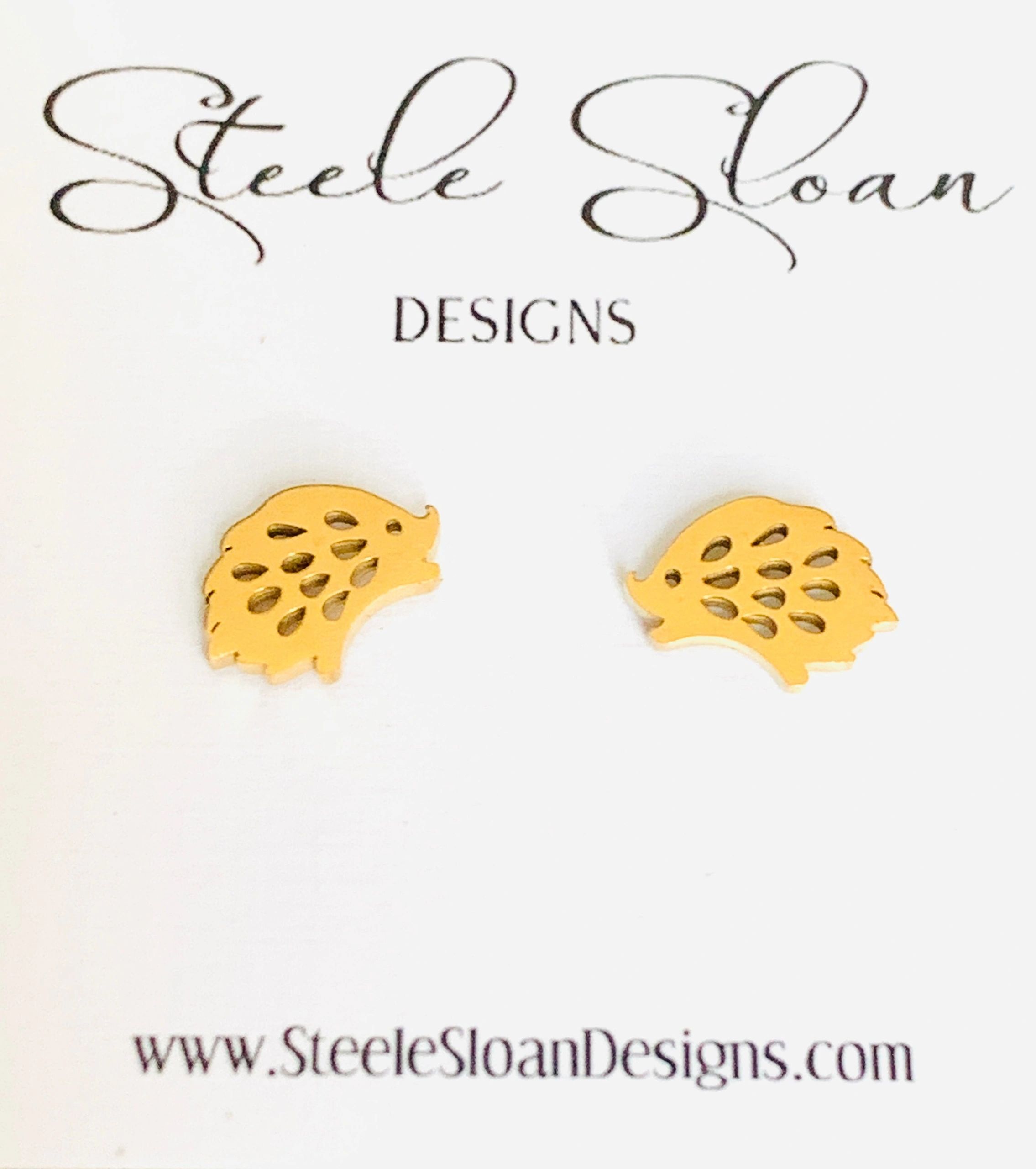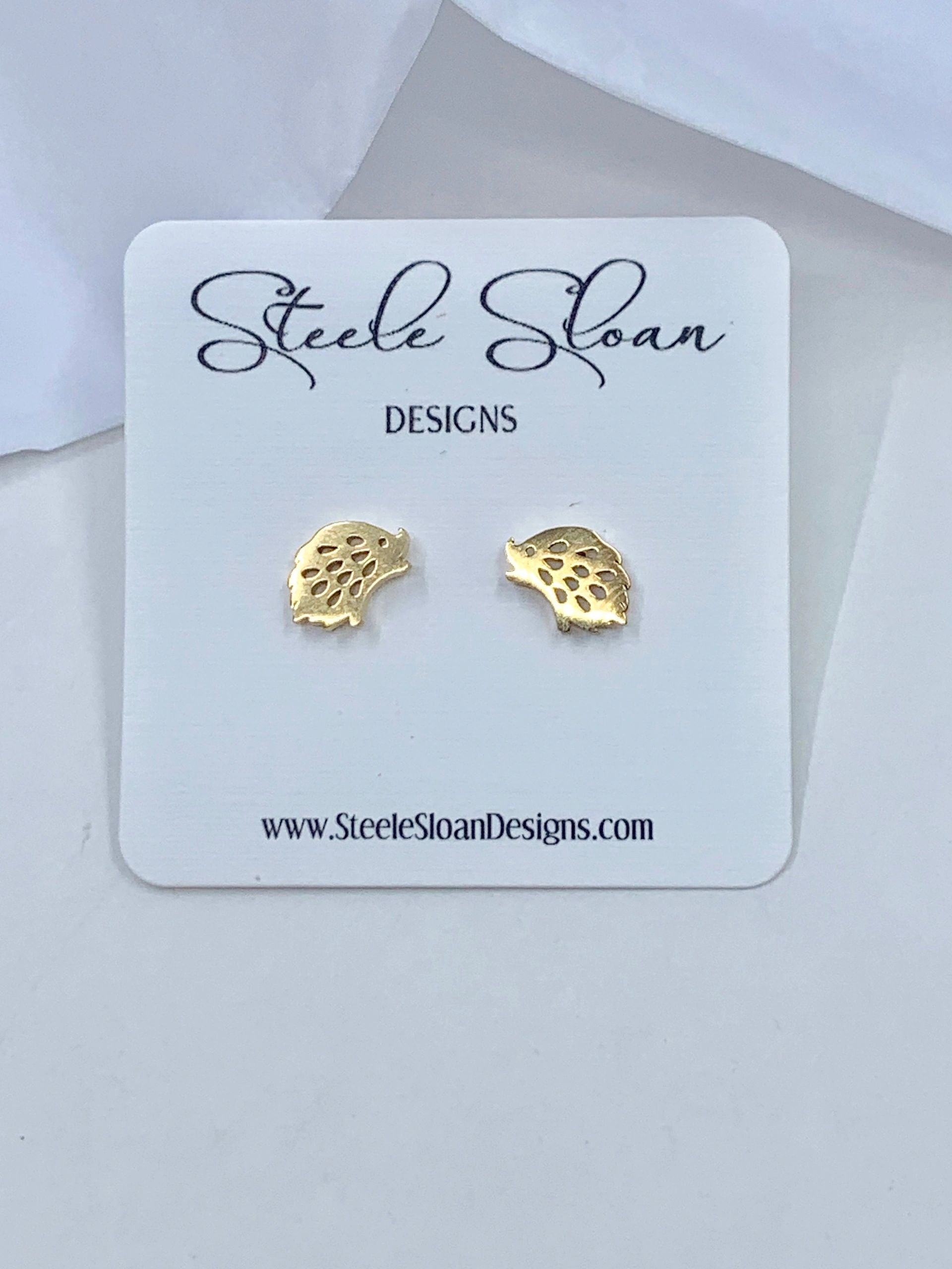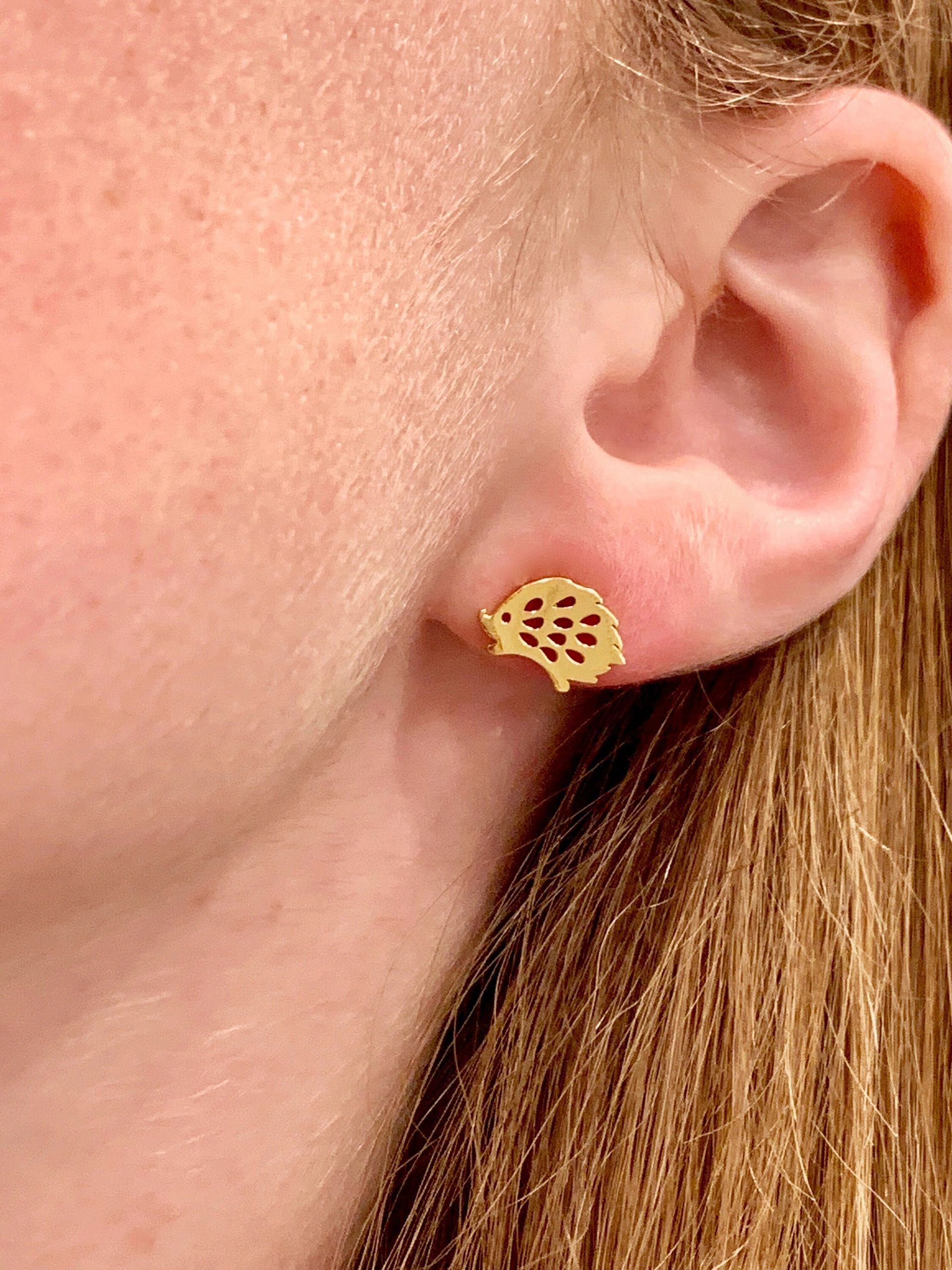 So Cute Hedgehog Gold Stud Earrings- These are perfect for those who Love Hedgehogs! Super Cute Earrings – measure just under 1/2 inch gold stainless steel hypoallergenic